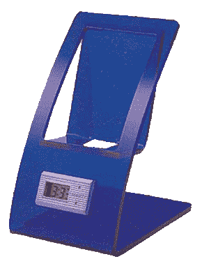 Univerzální akrylový stolní držák na mobilní telefony s hodinkami, které jsou vhodné do kanceláří, bytů, chalup apod., ale i jako reklamní předmět. (Jsme schopni Vám zajistit potisk těchto držků Vašim logem)